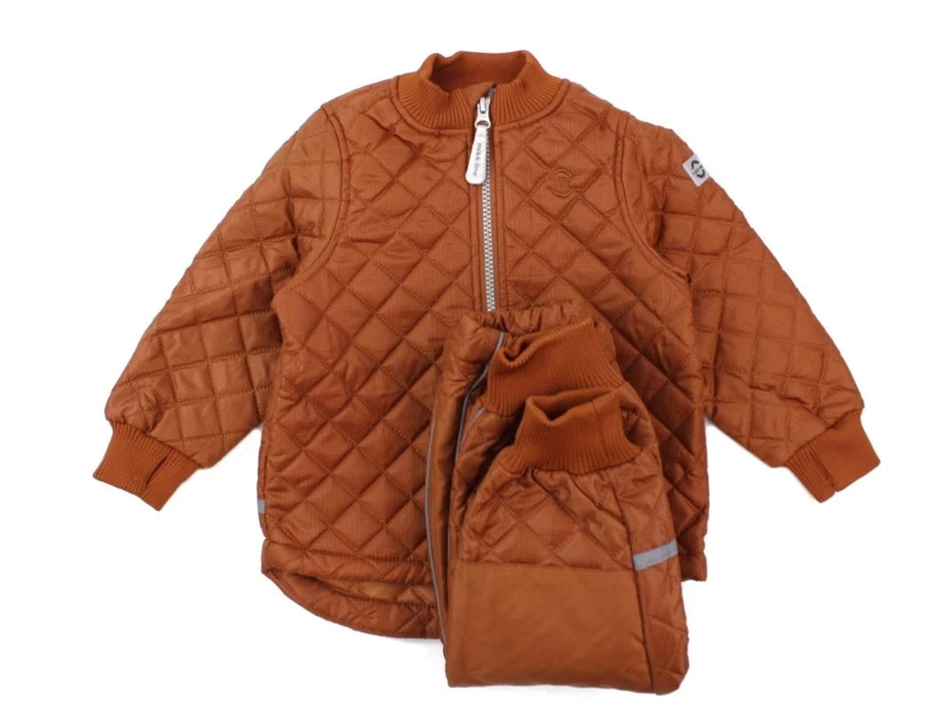Termosæt med jakke og bukser i farven ginger bread fra Mikk-line.