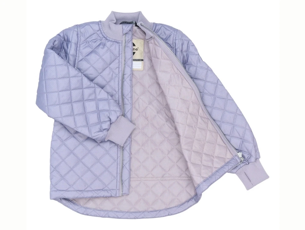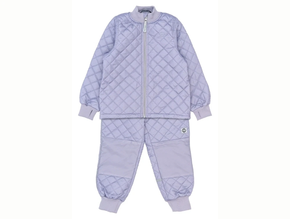 Termosæt i lys lilla nuance fra Mikk-line med quiltet struktur og bløde ribkanter.