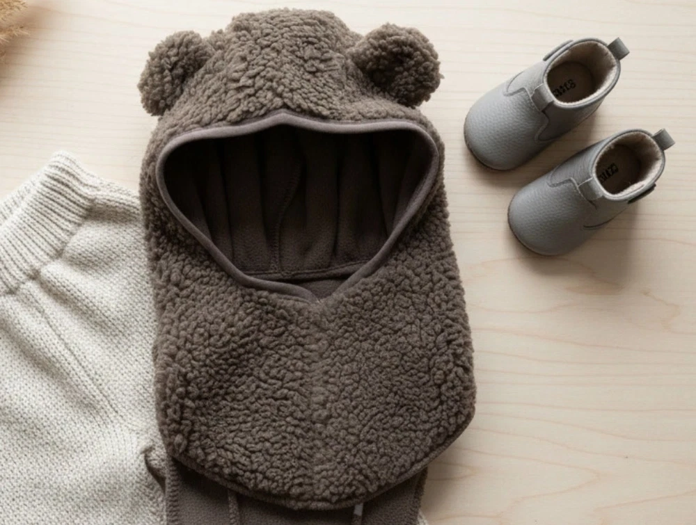 Elefanthue i teddyfleece i farven morel grey fra Mini A Ture.
