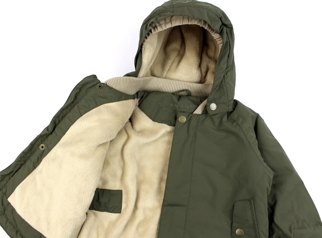 Vinterjakke i farven olive night med aftagelig hætte fra Mini A Ture.