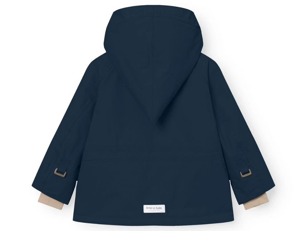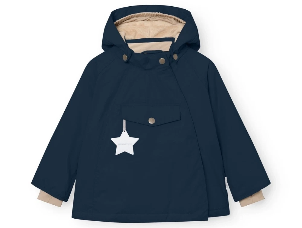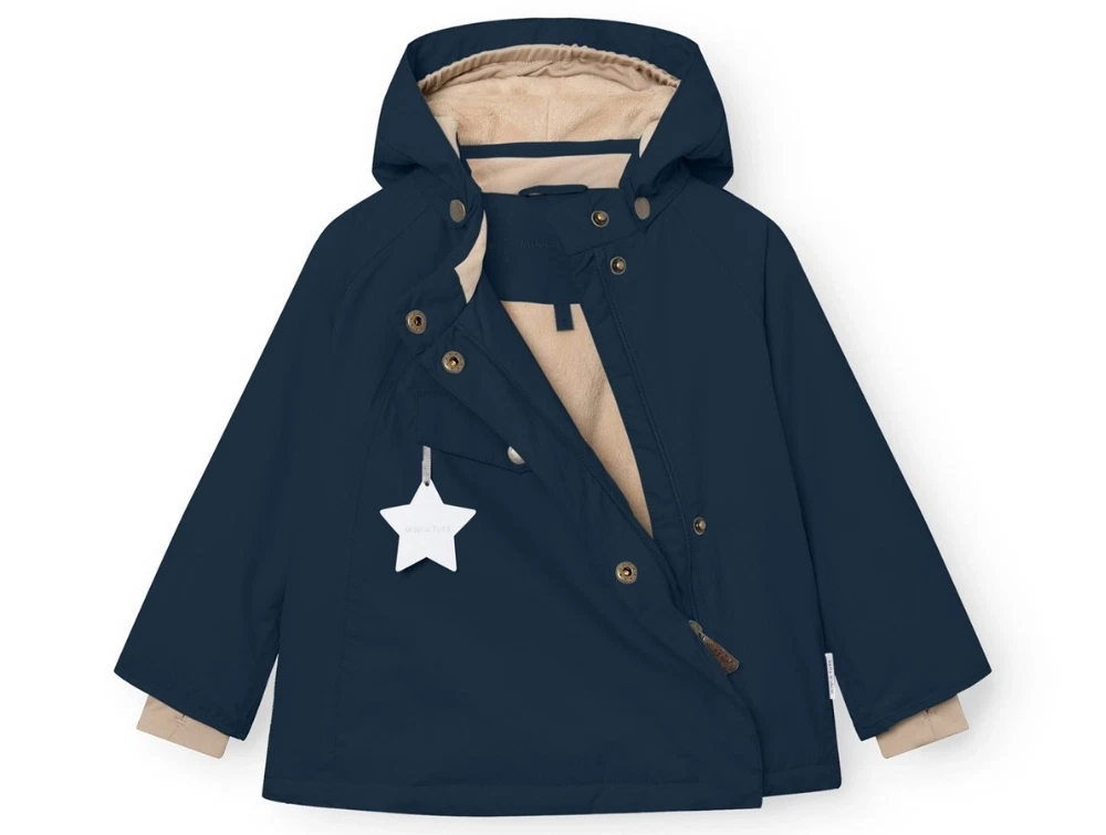 Mini A Ture vinterjakke i mørk blå med fleecefoer og justerbar hætte
