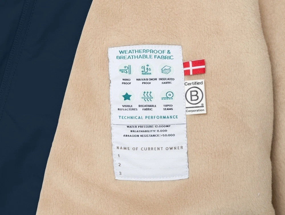 Jakken er fremstillet i genanvendt nylon og har blødt fleecefoer. Vandsøjletrykket er 12.000 mm og åndbarheden er 8.000 g/m²/24h. Slidstyrken er testet til over 50.000 Martindale. Jakken har tapede sømme og Bionic Finish ECO overfladebehandling uden flourstoffer. Thermolite® EcoMade polstring holder barnet varmt og tørt.