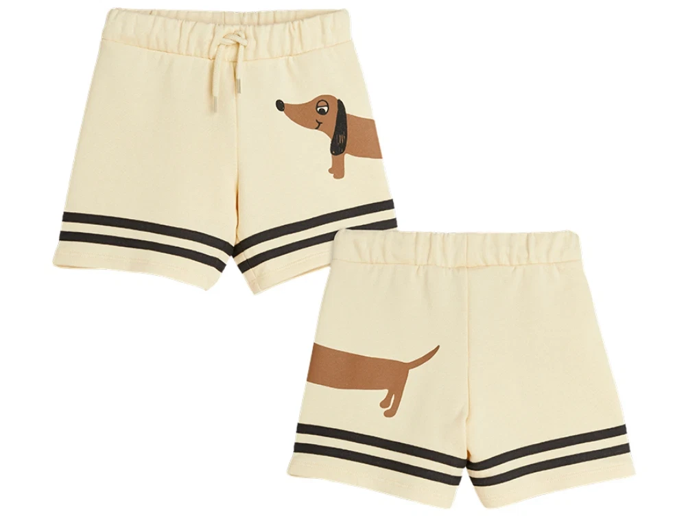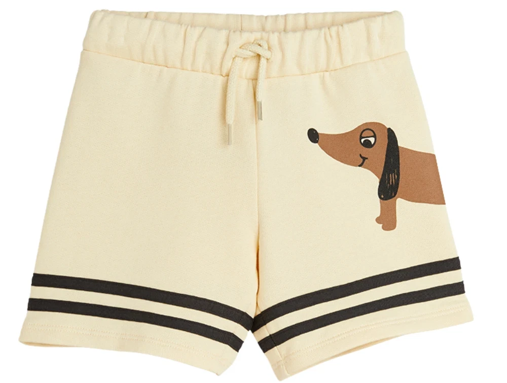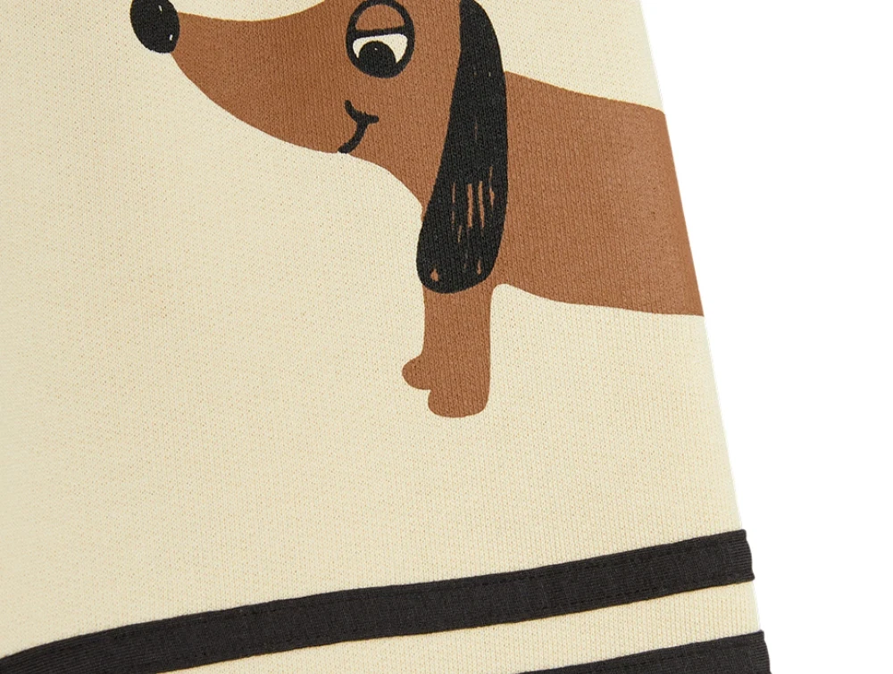 Beige sweatshorts med cute hundeprint fra Mini Rodini.