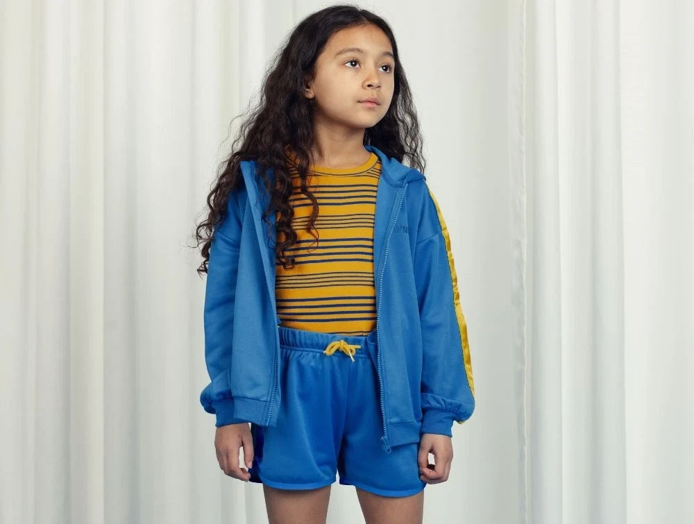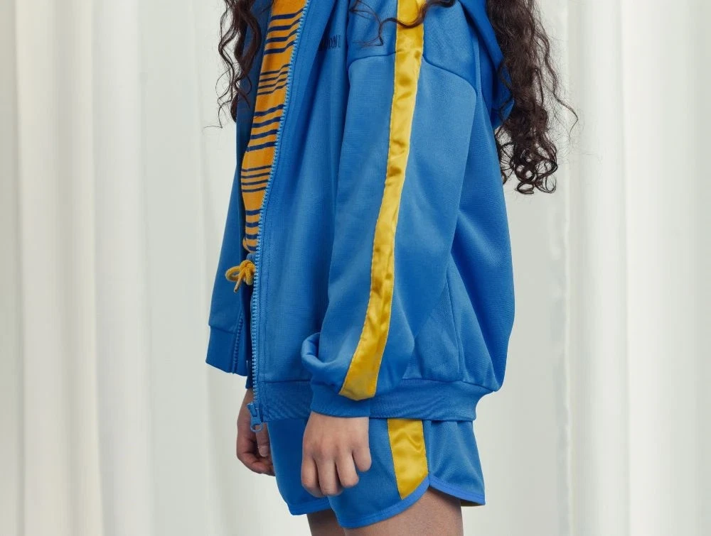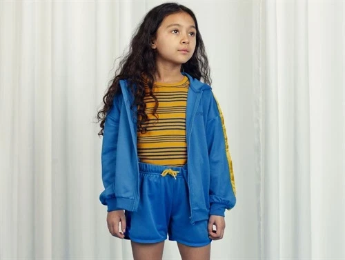 Blå hoodie med lynlås fra Mini Rodini.