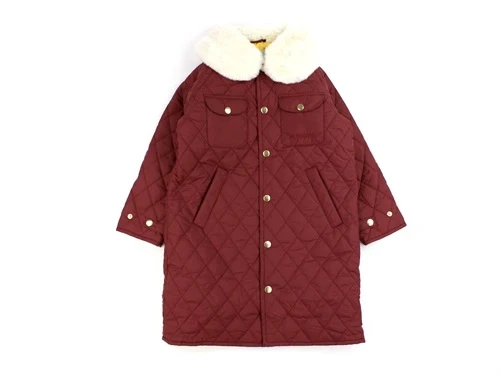 Lang quiltet frakke i farven brown med syntetisk pelskrave fra Mini Rodini.