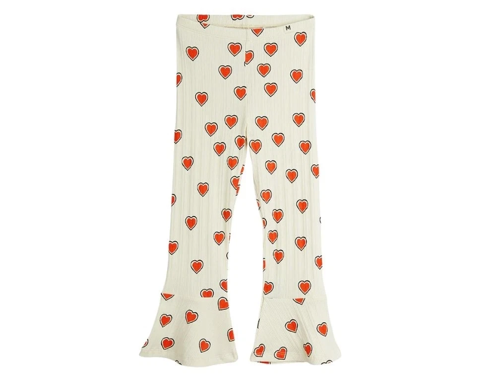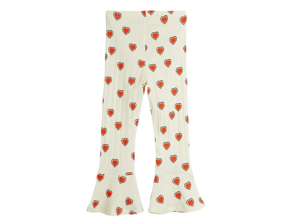 Flared bukser med hjerteprint i økologisk bomuld fra Mini Rodini: