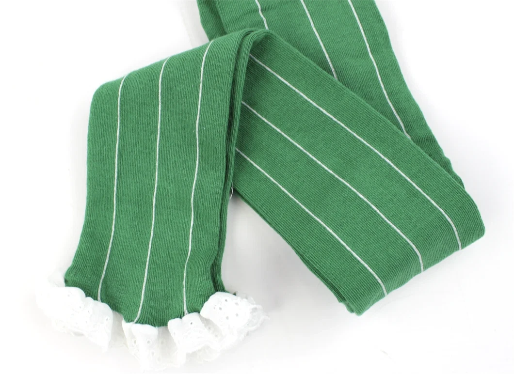Grønne nålestribede tights med blonde fra Mini Rodini.
