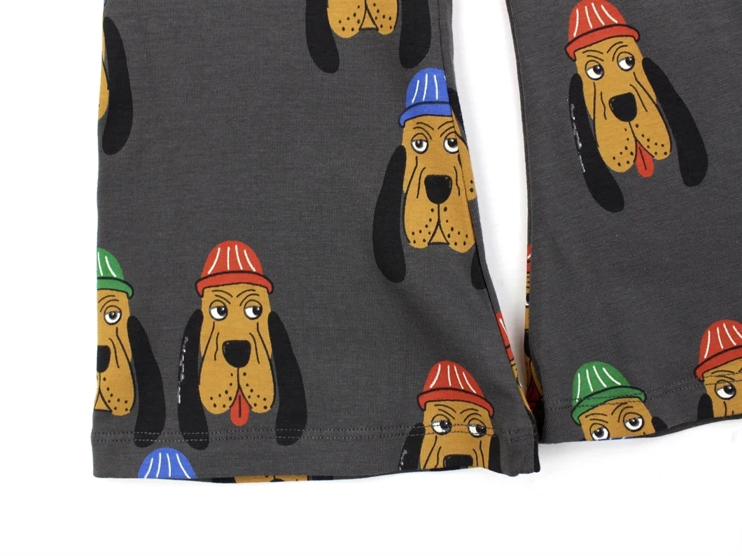 Grå bukser med svaj og skønt blodhunde-print fra Mini Rodini.