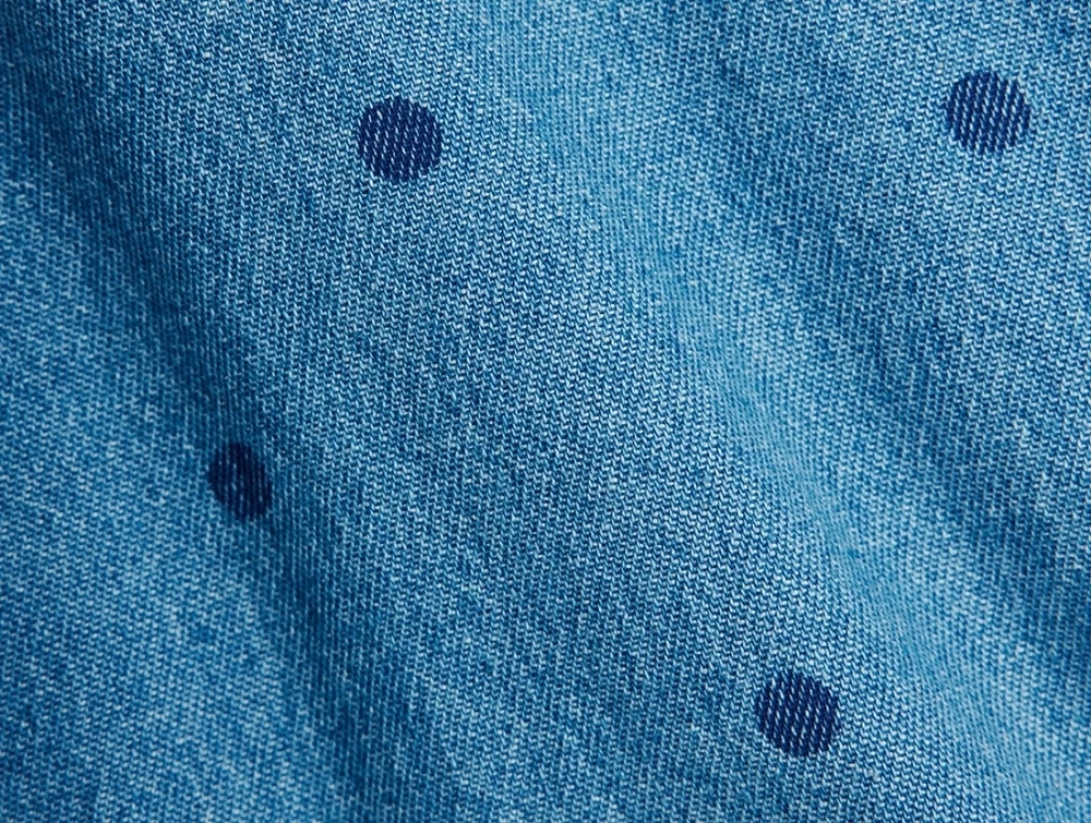 Kjolen er lavet i 100% bomuld (økologisk) i en let denimkvalitet, som føles blød mod huden og falder pænt, når den er på.