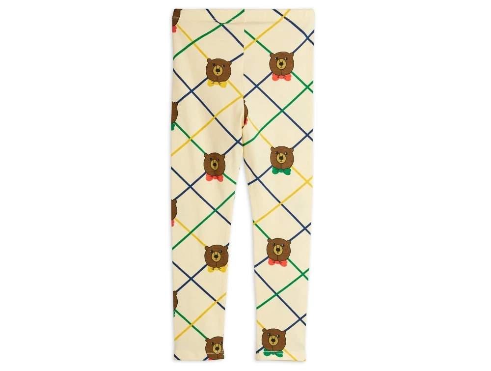 Leggings i råhvid fra Mini Rodini med farvede tern og bjørneprint med sløjfer.