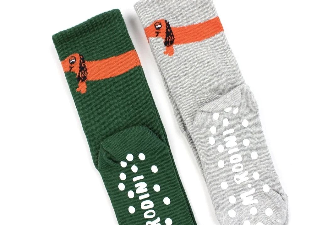 2 par skridsikre strømper med den cool gravhund fra Mini Rodini.