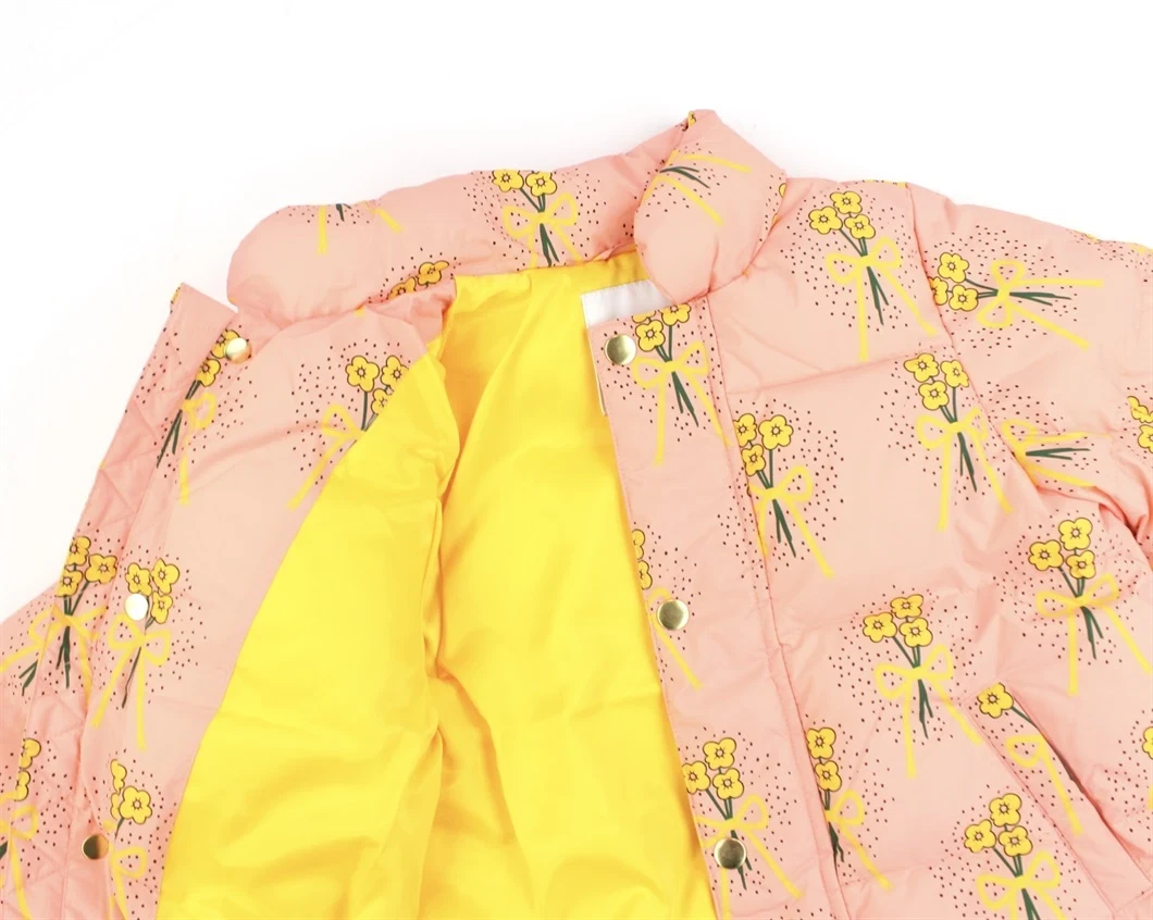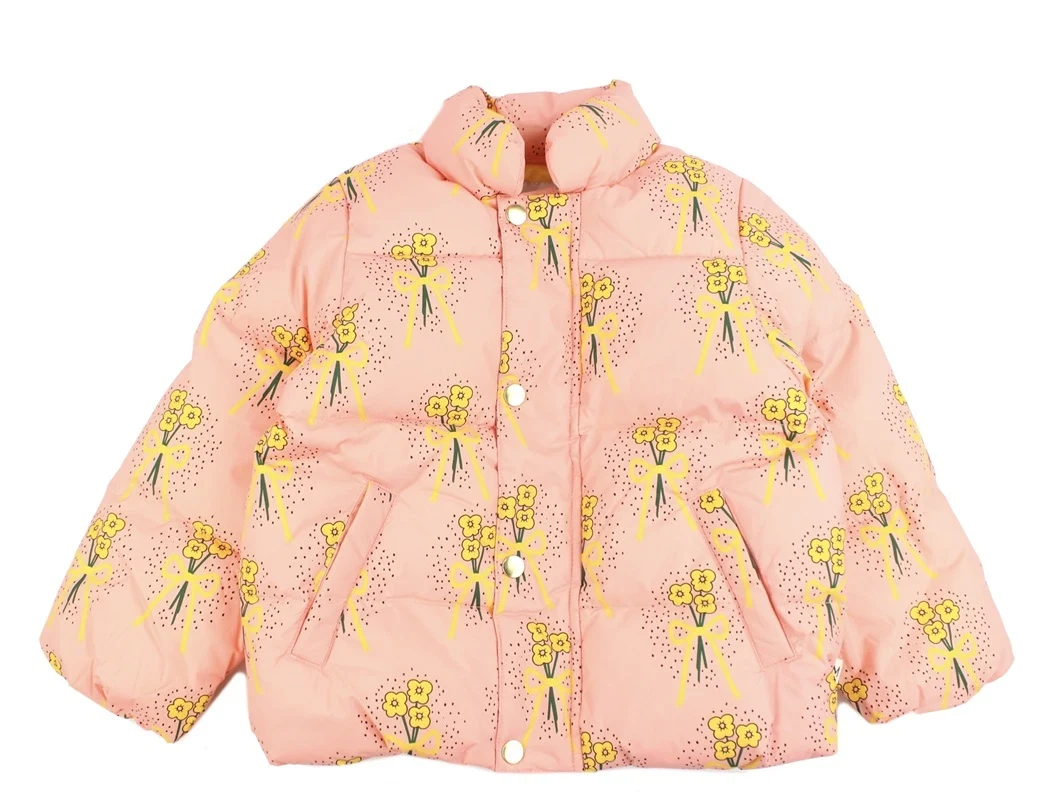 Mini Rodini pink winter flowers city puffer vinterjakke