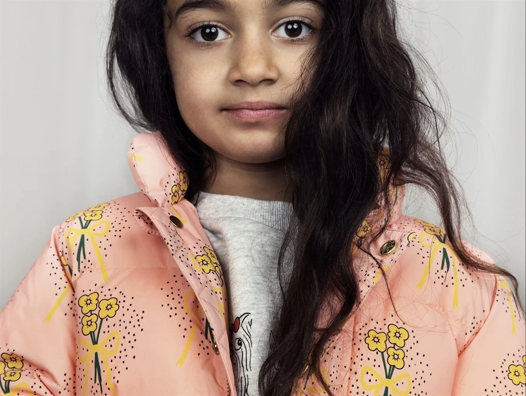 Vinterjakke i puffer med blomsterprint fra Mini Rodini.