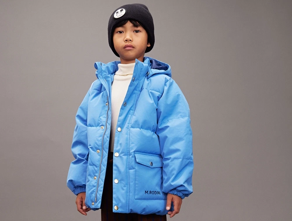 Mere information om Mini Rodini puffer vinterjakke blå med aftagelig hætte