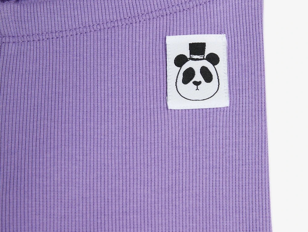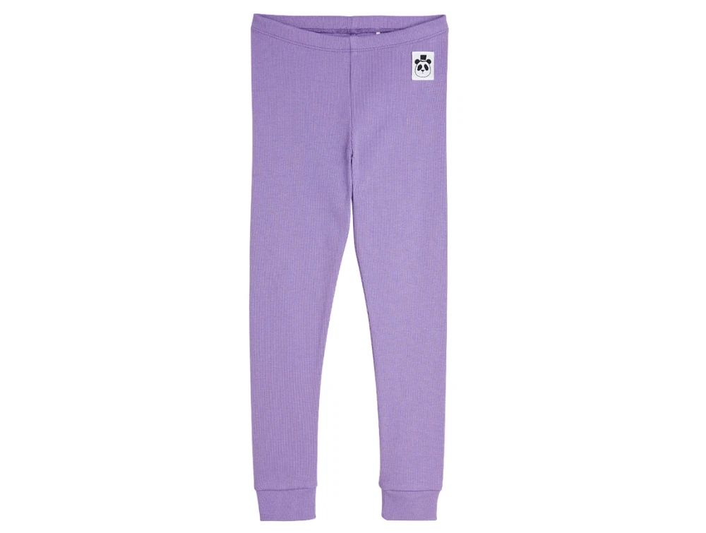 Lilla leggings i rib med panda label fra Mini Rodini.