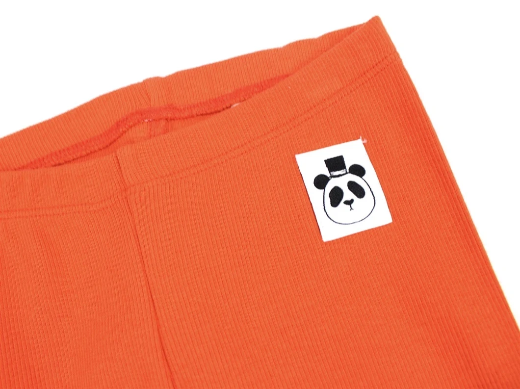 Disse ribstrikkede leggings med Mini Rodini Panda-label er lavet af GOTS-certificeret økologisk bomuld med stræk. De er designet med en elastisk linning og manchetter i bukseben for en behagelig pasform. Stoffet er lidt tungere med en vægt på 275 g/m², hvilket giver ekstra holdbarhed og komfort.