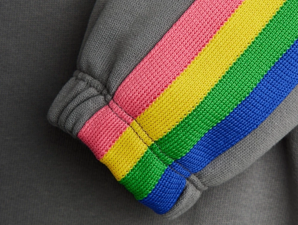 Mini Rodini sweatshirt i grå med regnbuefarvet panel