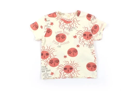 Offwhite kortærmet t-shirt med pink 'moon and sun'-print fra Mini Rodini.