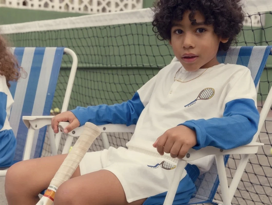 Hvide og blå shorts med skønt tennisprint fra Mini Rodini.