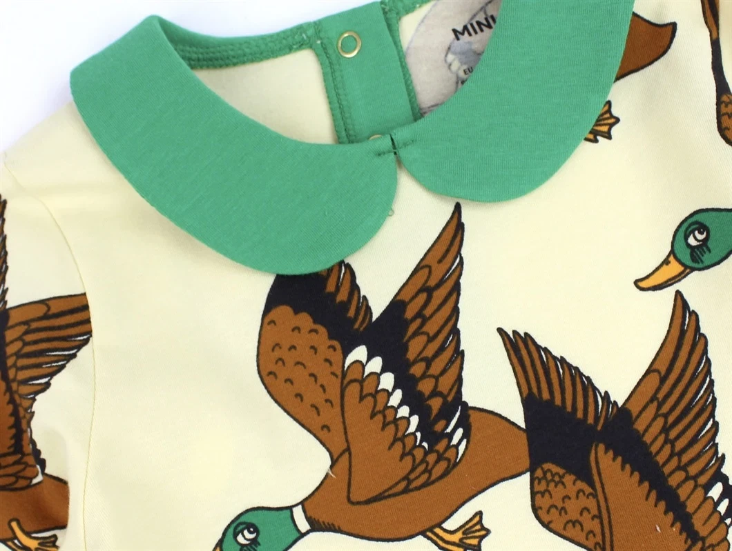 Svagt gul kjole med skønt andeprint fra Mini Rodini.