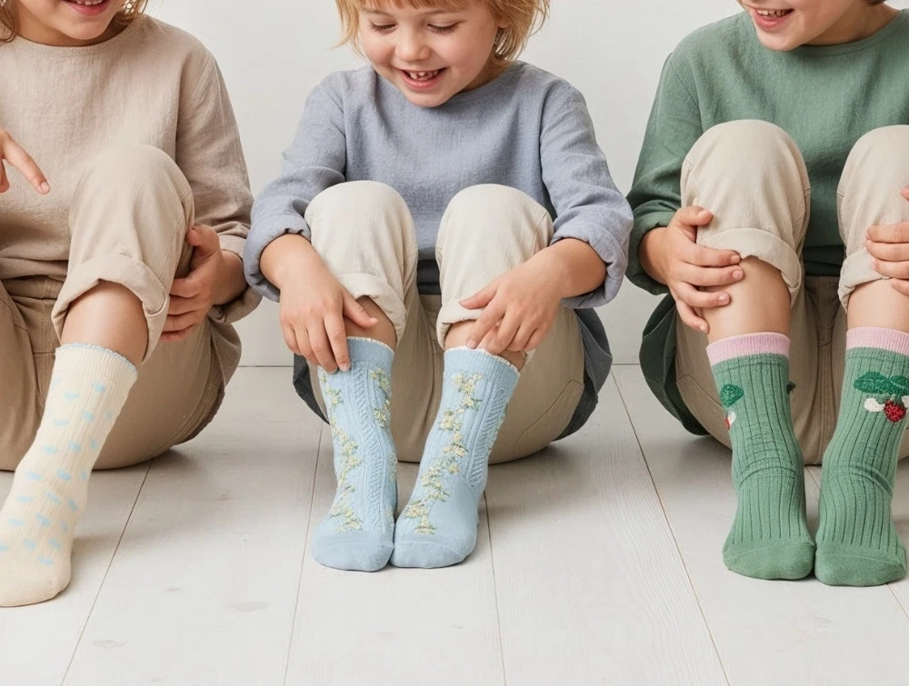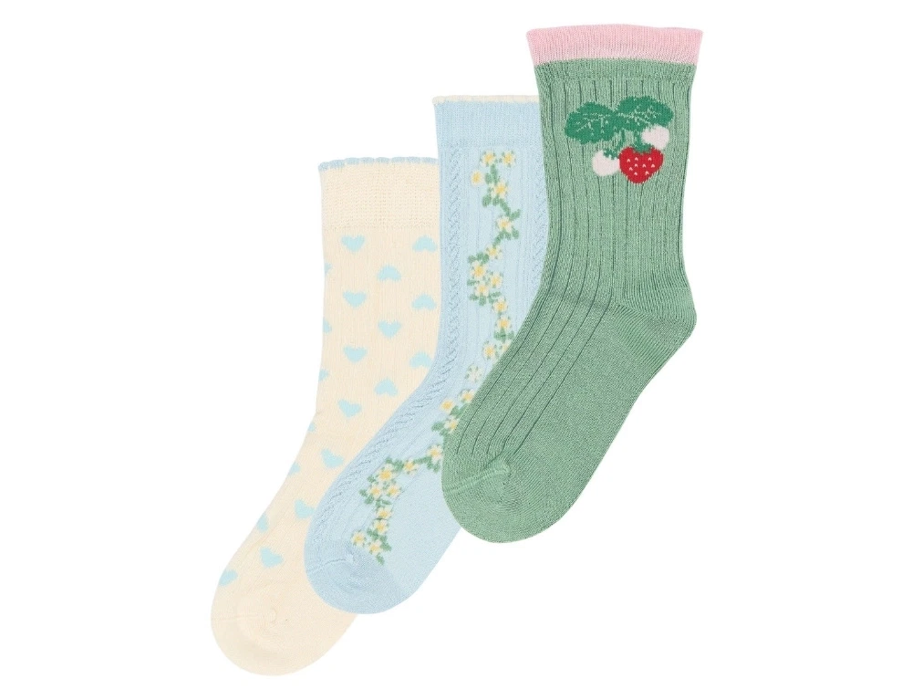 Strømper i blå og grønne nuancer fra MINIPOP med fine prints.