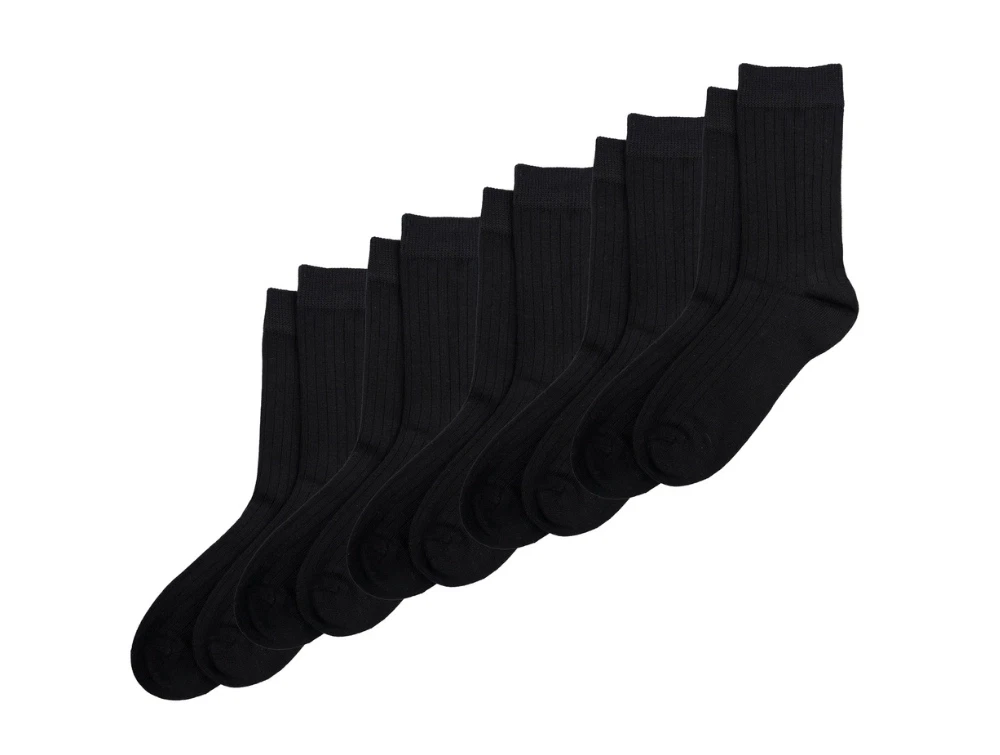 MiniPop bambus strømper 5-pak i sort med ribstruktur og sømløs tå