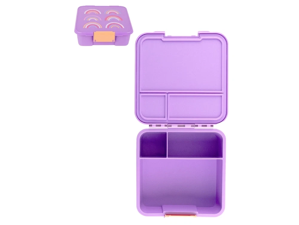 MontiiCo Bento 3 madkasse i lilla med regnbueprint og 3 rum