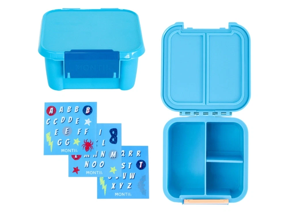 MontiiCo snackboks blå med 2 rum og klistermærkesæt