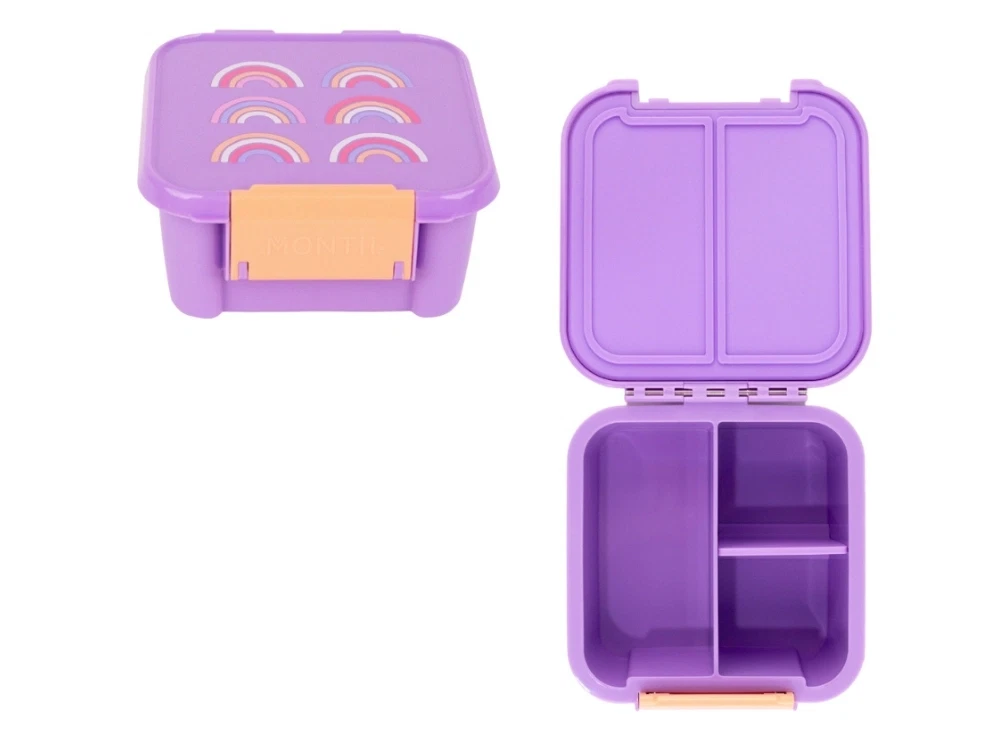 MontiiCo snackboks lilla med regnbueprint og 2 rum