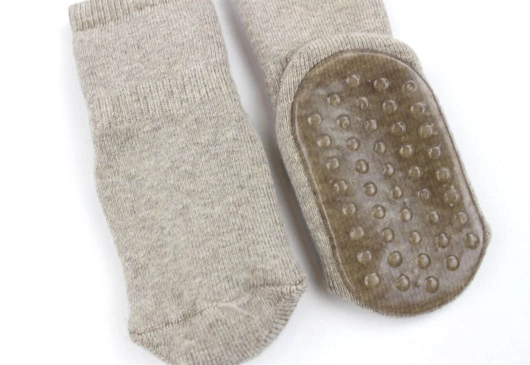 Ét par strømper i farven light brown melange med skridsikre såler fra MP.