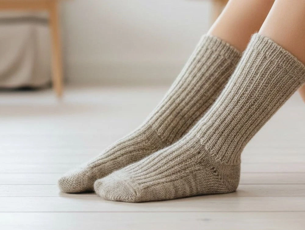2 par rib-uldstrømper i farven light brown melange fra MP.