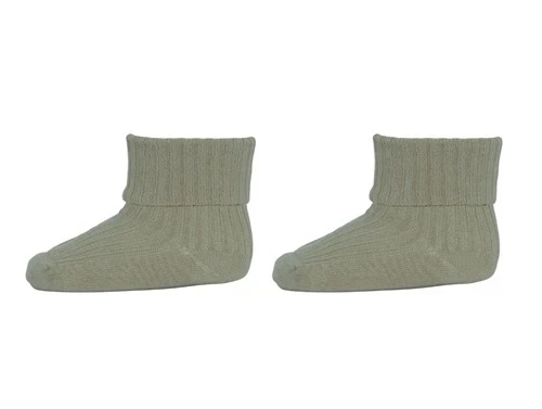 Klassiske ribstrømper i støvet grøn nuance (desert sage) fra MP. De små babystrømper er strikket i blød bomuld og har en anatomisk hæl samt ombuk ved anklen for optimal pasform.