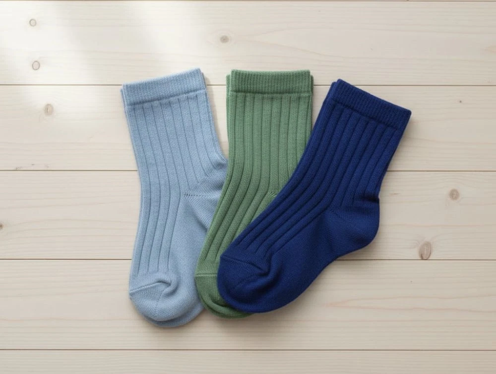 3 par forskelligefarvede ribstrømper i bomuld fra MP.