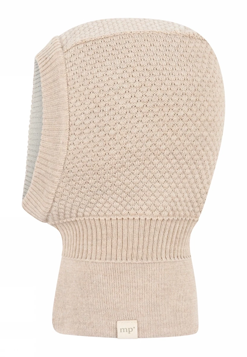 mpKids Oslo balaclava i beige melange af merinould med bomuldsfoer