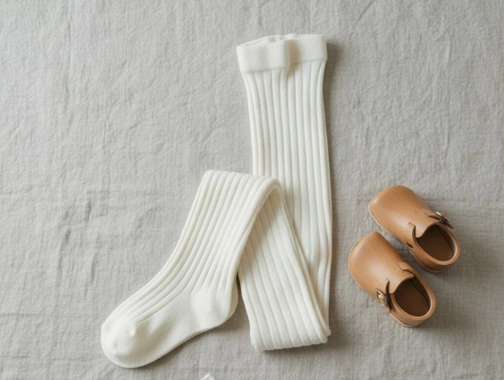 Strømpebukser i hvid nuance fra MPkids med klassisk ribstrik og blød bomuldskvalitet. Modellen har elastik i taljen, anatomisk korrekt hæl med 90° vinkel og en pasform, der sidder behageligt om benene til hverdagsbrug.