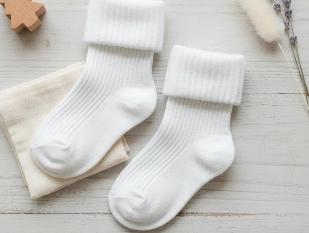 MPkids baby strømper i hvid rib med foldet kant og blød bomuld