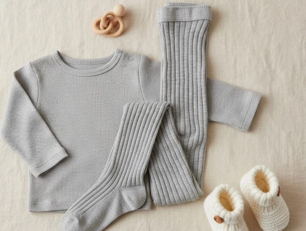 MPkids strømpebukser i grå rib med blød bomuld og god pasform