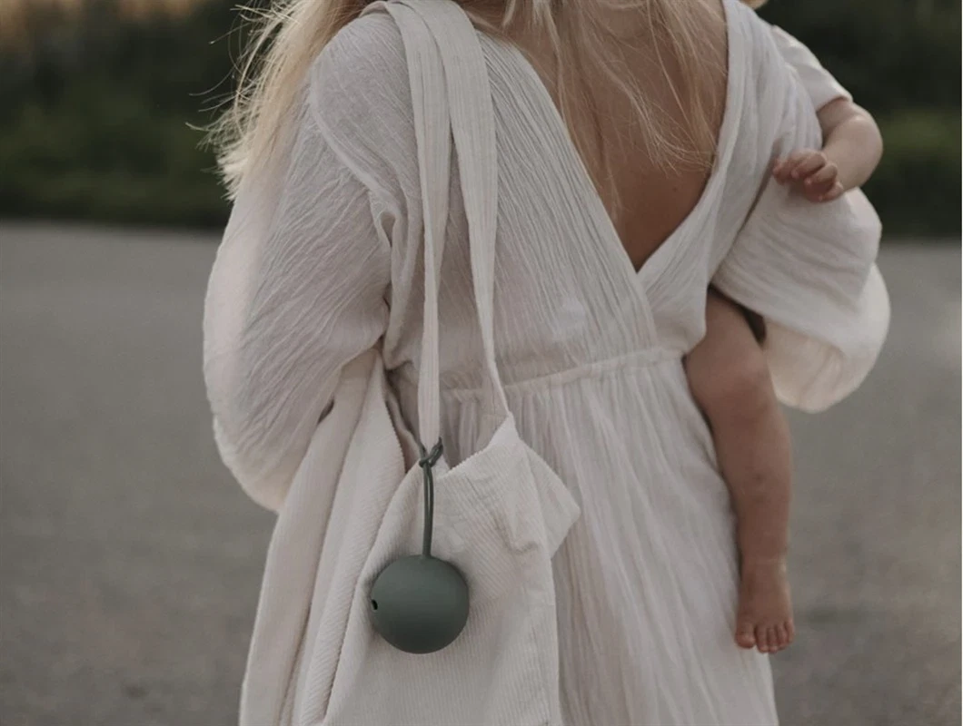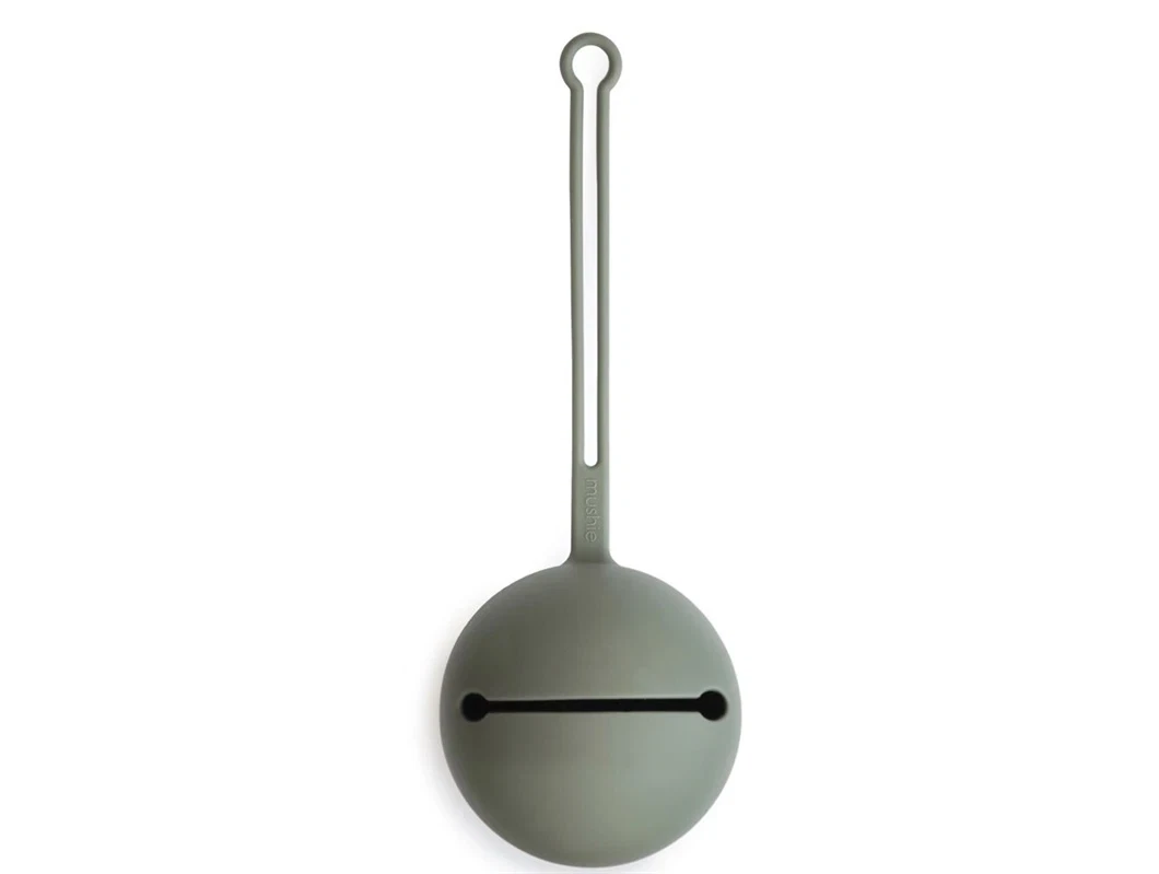 Sutteopbevaring i silikone i farven dried thyme fra Mushie.