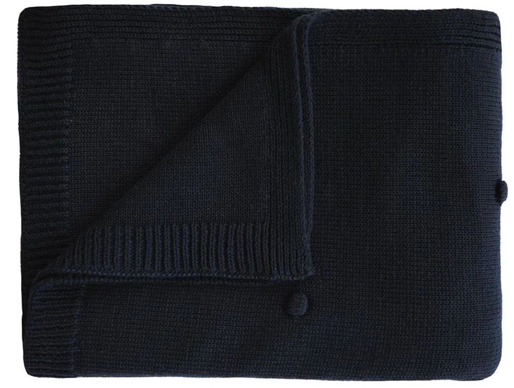 Mere information om Mushie textured dots dark navy strikket babytæppe