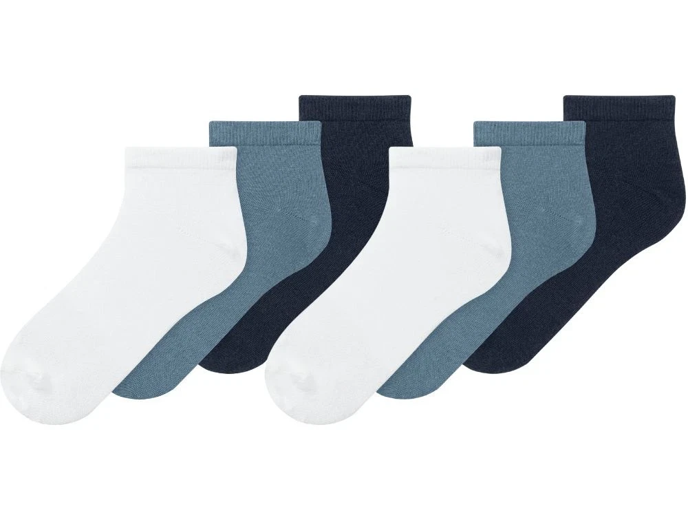 Bløde og komfortable ankelstrømper fra Name It i et praktisk 6-pak med tre forskellige farver: spring lake, hvid og navy blazer. Strømperne er lavet i en blød og strækbar kvalitet med en behagelig pasform, der sikrer komfort hele dagen.