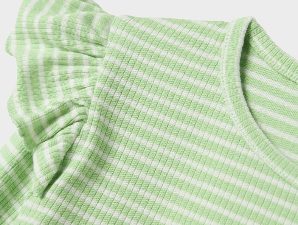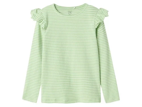Top fra Name It med lysegrønne striber og fine flæsedetaljer.