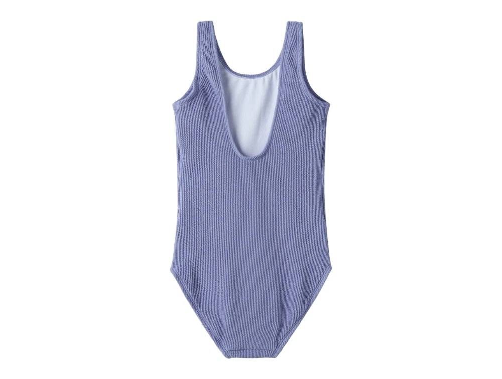 Name It badedragt lilla rib til børnDetaljebillede af Name It badedragt lilla til børnName It badedragt lilla med dyb ryg
