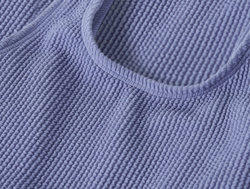 Badedragten er lavet i et elastisk materiale med ribbet struktur, som giver et enkelt og moderne udtryk. Den tætsiddende model har brede stropper og en dybere ryg, som giver god bevægelsesfrihed til leg i vandet, svømning og stranddage.