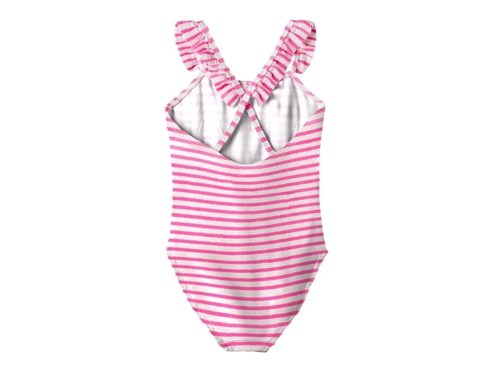 Mere information om Name It badedragt pink striber med flæser