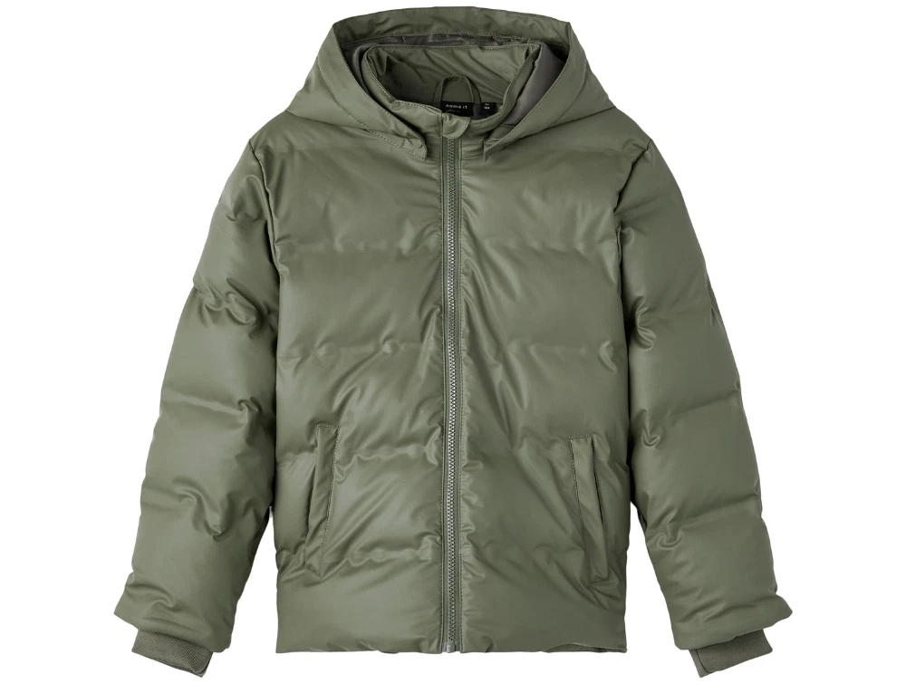 Gummivinterjakke i farven beetle med aftagelig hætte med trykknapper fra Name It.