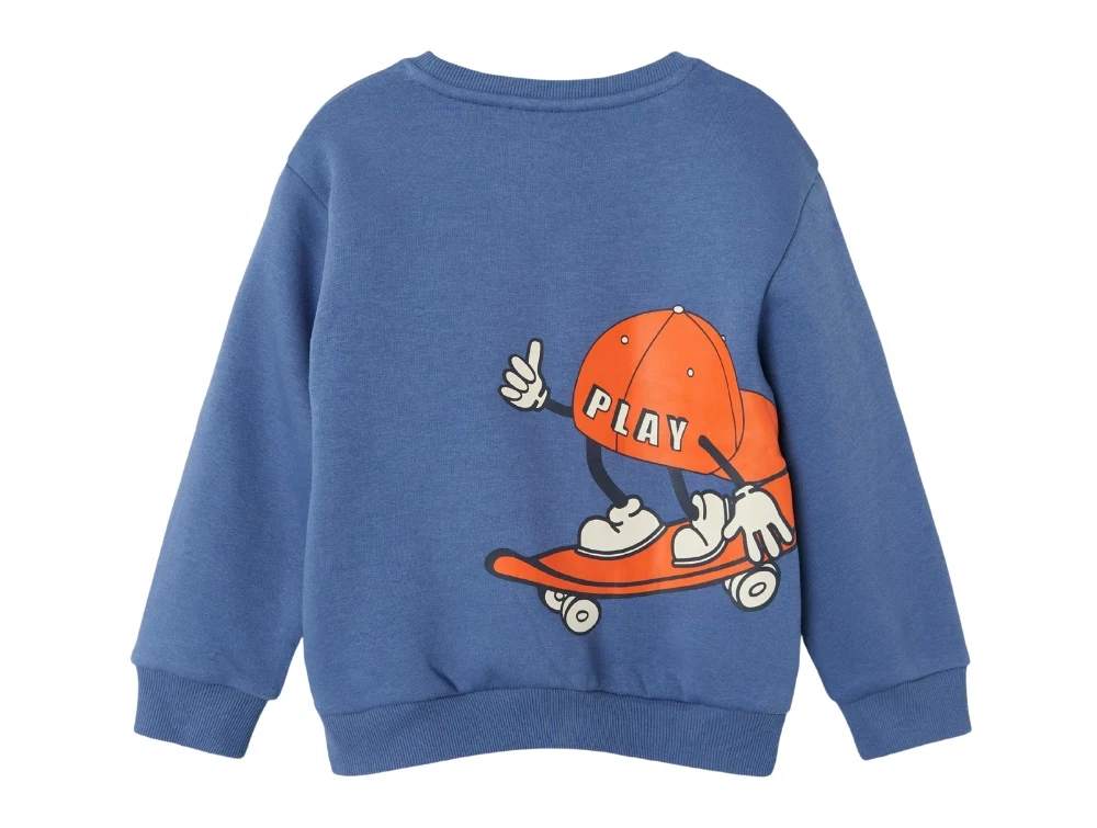 Sweatbluse i farven bijou blue med skate tema fra Name It.