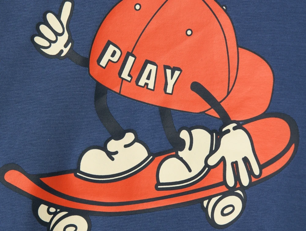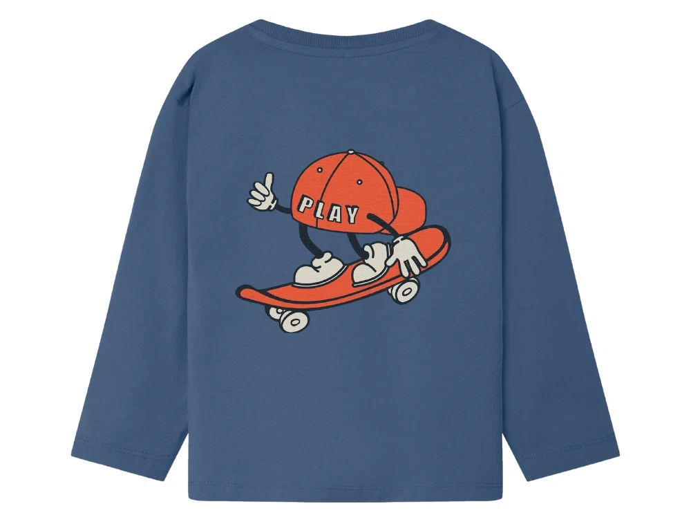 Langærmet top i farven bijou blue med skater tema fra Name It.