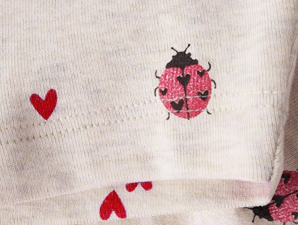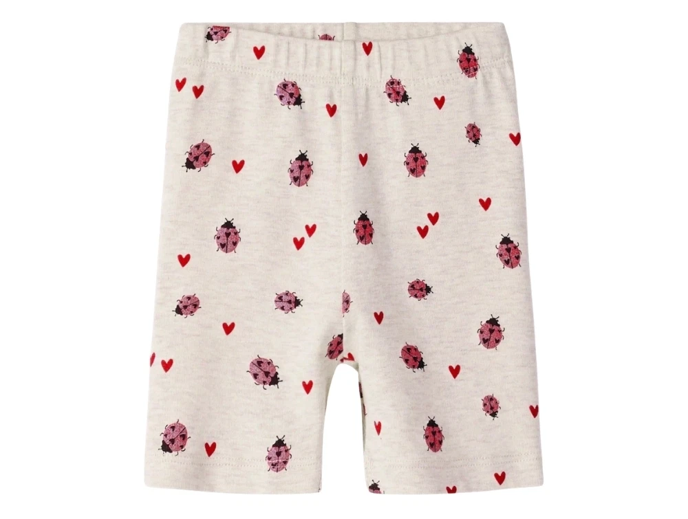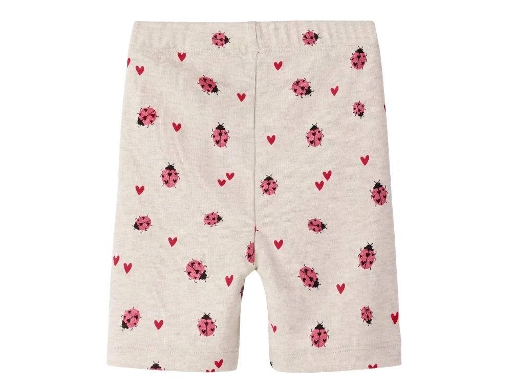 Cykelshorts i beige nuance (peyote melange) fra Name It med mariehøneprint og små hjerter.