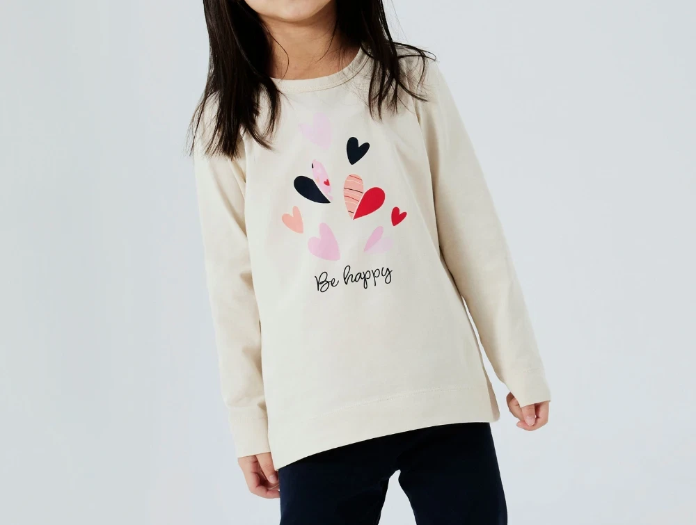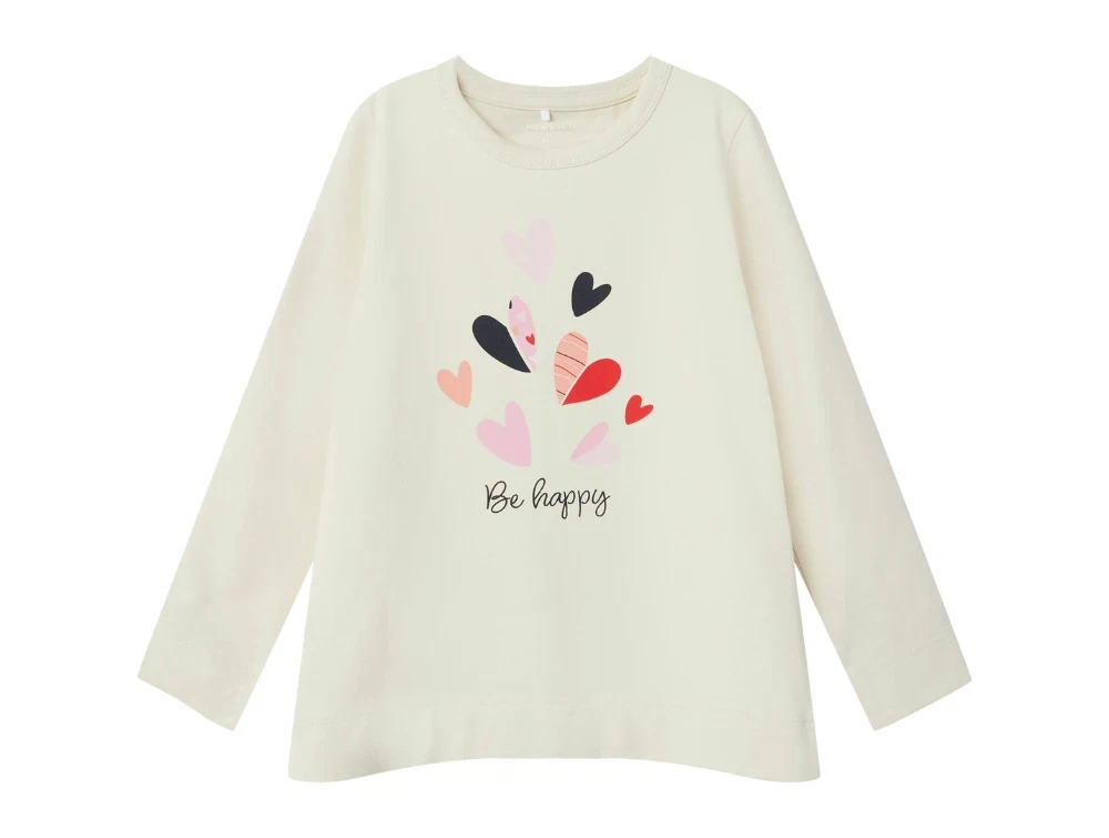 Langærmet top i farven birch med hjerteprint fra Name It.