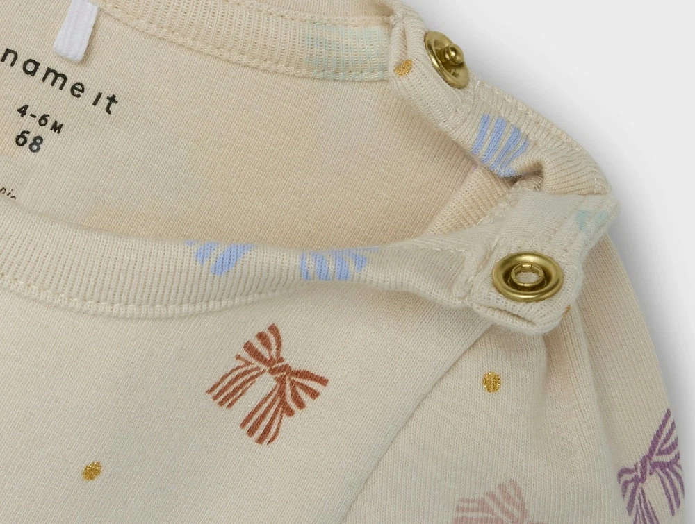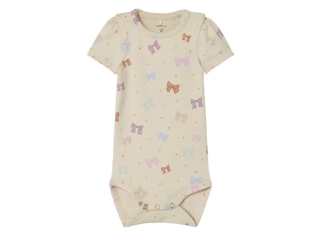 Kortærmet body i farven birch med sløjfer fra Name It.